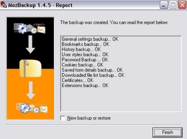 Pretty neat eh! You can check out this page for more information on how to backup using the command line. Once a backup is complete, you'll get a window with the status of the backups. Then click Finish to close the program. Overall, it's a very straight-forward and easy to use program. If you are tech-savvy, you can use the command line feature to schedule automatic backups of your Mozilla profiles. Enjoy!